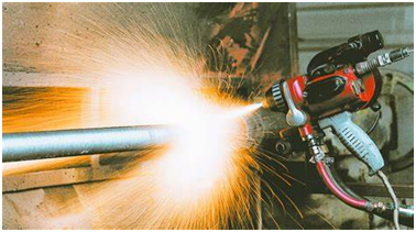 熱噴涂熔融金屬鉻粉,將高速粒子流噴在基體表面,以產(chǎn)生對覆層材料的保護作用。